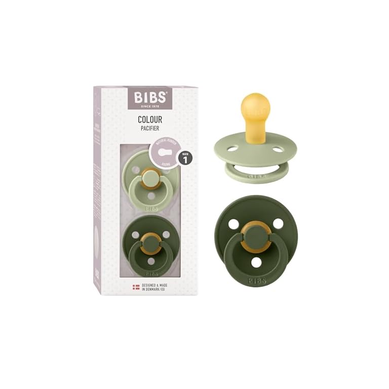 BIBS Pacifiers Colour Collection | Natural Rubber Baby Pacifier | Set of 2 BPA-Free Soothers | Made in Denmark | 0+ Months (Pack of 2) | Sage/Hunter Green
