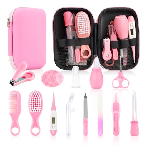 OTTOLIVES Baby Healthcare and Grooming Kit, 24 in 1 Baby Electric Nail Trimmer Set Newborn Nursery Health Care Set for Newborn Infant Toddlers Baby Boys Girls Kids Haircut Tools (0-3 Years+) (Pink)