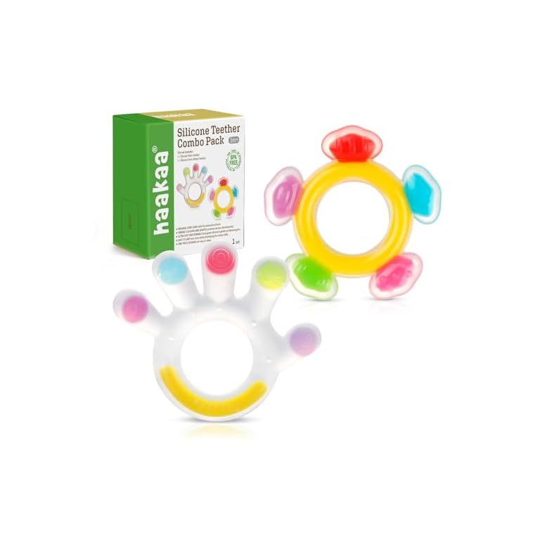 Nuby Super Soft Silicone Teether with Suction Base – Visually Stimulating and Easy to Grasp Toy for Baby Teething Relief – 3+ Months