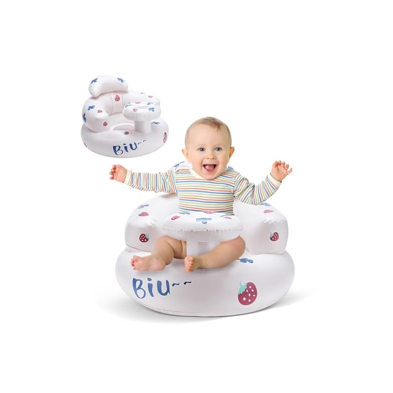 LINGSFIRE Inflatable Baby Seat for Babies, 3 Months and up Inflatable Seat for Baby Sitting up Blow up Baby Chair Built-in Air Pump Baby Blow up Chair for Home Travel Baby Floor Seat Gifts, White