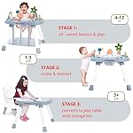 🎯 3-Stage Grow-with-Baby Activity Center (6+ Months):From seated play to first steps! This multi-functional activity table grows with your child: Sensory Play (6-12M) → Stand & Explore (12-18M) → Walk-Around Creativity (18M+). Combines a 360° walk-around panel, adjustable bouncer seat, and building block station to boost balance, motor skills, and cognitive development—perfect for babies to toddlers!