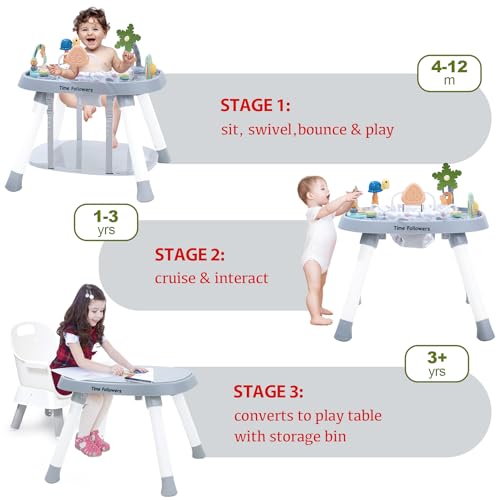 Time Followers® Baby Activity Center | 3-Stage 4Modes Activity Center & Play Table | Montessori-Inspired Design | Exersaucer, Jumper & Bouncer for Baby Ages 6M+ (Grey)