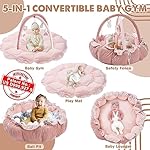 HAN-MM 5-in-1 Convertible Baby Play Gym with 6 Toys, Tummy Time Mat for Sensory Development, Baby Activity Center from Newborn to Toddler, Ball Pit, Cat & Dog Bed, Soft Plush Pet Bed, Pink