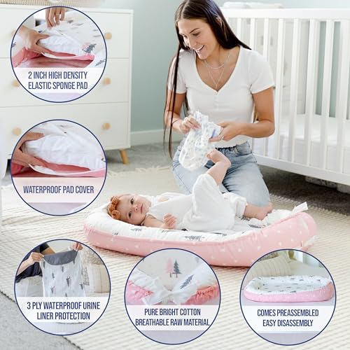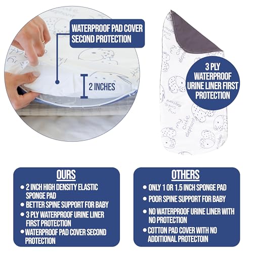 Multiple Mess-Proof Layers: Our infant lounger comes with a 3-ply waterproof liner – which keeps pee and drool from seeping through – along with a waterproof mattress cover for even more protection
