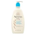 18-fluid ounce bottle of gentle cleansing Aveeno Baby Daily Moisture 2-in-1 Bath Wash and Hair Shampoo with natural oat extract to cleanse baby’s delicate hair and skin