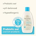 8-fluid ounce bottle of Aveeno Baby Healthy Start Newborn Wash with prebiotic oat gently cleanses your little one’s delicate skin, and is mild enough to start using from day one for newborn skin care
