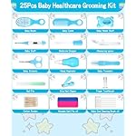 Baby Grooming and Healthcare Kit, Portable Baby Safety Care Set with Hair Brush Comb Nail Clipper Nasal Aspirator for Nursery Newborn Infant Girl Boy (25 in 1, Blue)