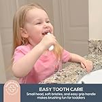 𝐂𝐨𝐦𝐩𝐚𝐜𝐭 & 𝐒𝐨𝐟𝐭 𝐁𝐫𝐢𝐬𝐭𝐥𝐞𝐬 𝐓𝐨𝐨𝐭𝐡𝐛𝐫𝐮𝐬𝐡: The compact head and soft bristles ensure great oral hygiene for developing teeth; The easy grip handle encourages your toddler to learn correct brushing techniques with ease.