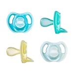 Tommee Tippee Ultra-Light Silicone Pacifier, 6-18 Months, Symmetrical One-Piece Design, BPA-Free Silicone Binkies, Blue/Green/Yellow, Pack of 4