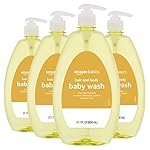 Four 27.1-fluid ounce bottles of Amazon Basics Tear-Free Baby Hair and Body Wash