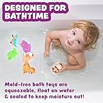 SOFT, SQUEEZABLE & EASY TO GRASP: Our non mold bath toys are soft, smooth & squeezable, yet durable for long-lasting fun! Perfectly sized baby bath toys for little hands to easily grasp, hold & play!
