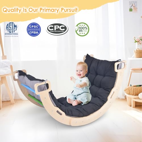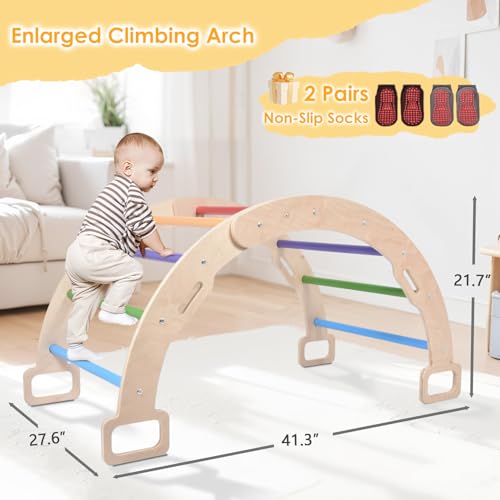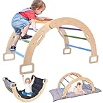 BIERUM Climbing Arch for Toddler, Wooden Climber Toys Inside, Montessori Arch Rocker Indoor, Kids Ladder Arch for Climbing with Two-Color Soft Cushion, Natural, Rainbow
