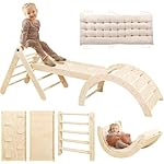 Pikler Triangle Set with Cushion, 7 in 1 Toddler Climbing Toys Indoor, Montessori Foldable Climbing Set, Wooden Climbing Toys for Toddlers 1-3 Inside with Ramp, Arch and Ladder (Nature Wood)