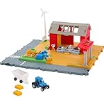 Come on down to the Matchbox farm where the crops are ready for harvest and the animals need to be fed. This realistic playset includes kid- and car-activated features and true-to-life sounds like a rooster crowing for enhanced storytelling. Kids drive the 1:64 scale tractor to plow the fields, tend to the livestock and deliver hay bales, while activating real farm sounds. Three detachable animal figures– horse, goat and cow – and additional accessories like hay bales and a trailer broaden the storytelling possibilities. Makes a great gift for kids 3 years old and up. Colors and decorations may vary.