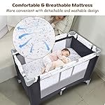 【Multifunctional Composition】 This baby playard accompanies the growth of the baby. The design of the diaper table allows the mother to easily change diapers, and the comfortable bassinet mat provides a place for the baby to rest (Suitable Mat Size: 38” x26”). After removing the mat, the wide space allows the baby to practice standing and playing.