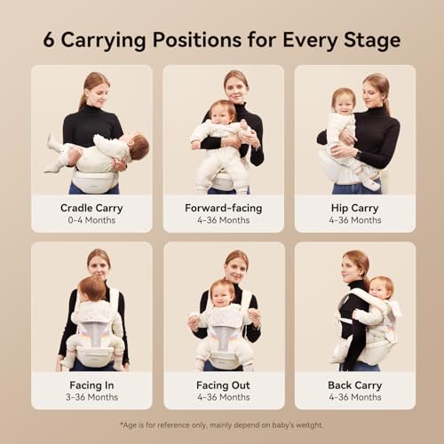 6-in-1 Carrier for Every Stage: Grow with your baby from newborn to toddler (7-44 lbs)! Switch between 6 carry modes—inward bonding, forward-facing exploration, back carry, hip seat, side-lying cradle, and toddler backpack. One carrier for every adventure – hikes, errands, or cozy days at home