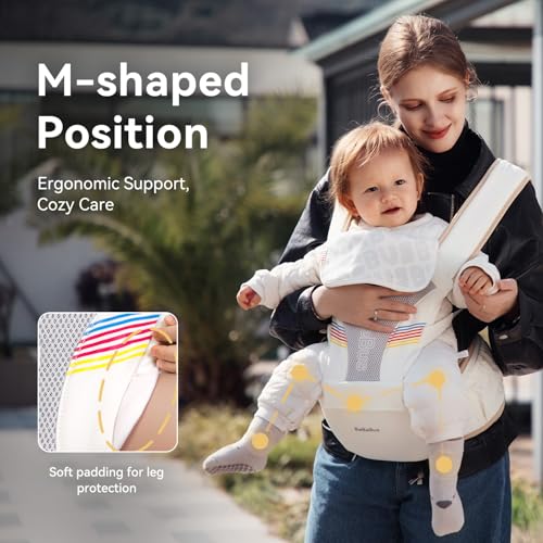 Hip-Healthy & Spine-Safe Design: Pediatrician-recommended M-position seating ensures healthy hip development (frog-leg posture), while the C-curve spine support mimics your natural embrace. A padded, widened seat keeps your little one comfy from infancy to preschool