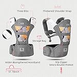 Baby Carrier, Bellababy Multifunction Baby Carrier Hip Seat (Ergonomic M Position) for 3-36 Month Baby, 6-in-1 Ways to Carry, All Seasons, Adjustable Size, Perfect for Shopping Travelling (Grey)