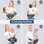 Baby Carrier with Hip Seat, Ergonomic Front Carrier for Newborns & Toddlers, Adjustable Waistband with Strong Support, Large Pocket Design, Grey