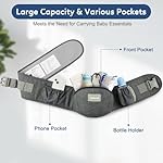 Convenient Storage Pocket: The lightweight infant carrier’s hip seat features a large storage pocket, perfect for carrying essentials like diapers and wipes, eliminating the need for an extra bag. Additionally, the sides of the waistband have pockets designed to hold bottles, pacifiers, smartphones, and other small items, making outings simpler and less burdensome for parents.