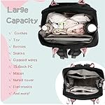 Large Capacity: Length : 12.5 inches, Width: 8.5 inches, Height: 17 inches, Total eighteen Pockets with plenty of room to carry your all items and mommy stuff: newborn bibs, cloth diapers, medicine, formula, 15.6 inches laptop and breast bump, perfect for travel