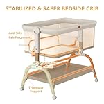 【Convertible Bedside Sleeper & Standalone Crib】3-in-1 baby bassinet can easily switch between standalone crib and bedside co-sleeper modes. The 6 adjustable heights ensure seamless alignment with your bed, while the 30% wider base (vs standard bassinets) provides extra stability on any floor surface.