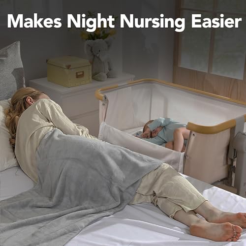 3-in-1 Baby Bassinet Bedside Sleeper with Memory Foam Mattress, Adjustable Rocking Crib, Breathable Mesh & Wheels, Spine Protection, CPSC Certified for Newborns & Infants
