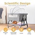 Bedside Crib, 3 in 1 Bassinet with Quick Height Adjustment and Mosquito Nets Rocking Bassinet for Baby, Bedside Bassinet with Wheels, Easy to Fold, Golden Triangle Structure(Grey)