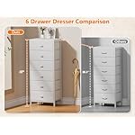 Furnulem White Tall Dresser for Bedroom,Vertical Storage Tower Unit and End Table with 6 Drawers, Nightstand Furniture with Fabric Drawer Organizer in Living Room,Closet,Entryway,Hallyway