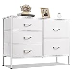 WLIVE White Dresser for Bedroom with 5 Drawers, Fabric Dresser for Living Room, Wide Chest of Drawers for Bedroom, Closet, Hallway, White
