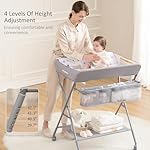 Baby Changing Table with Wheels, Maydolly Portable Adjustable Height Folding Diaper Station with Nursery Organizer & Storage Rack for Newborn Baby and Infant (Light Grey)