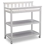 The Flat Top Changing Table with Wheels from Delta Children grants you the freedom to easily change and dress your baby. A convenient changing station, this versatile table has a flat back with slated detailing and a streamlined profile that effortlessly pairs with any item. Outfitted with two fixed shelves to conveniently store your child’s essential items, the Flat Top Changing Table also features four casters on the bottom, so you can roll the unit from one end of the room to the other. For your baby’s safety, the included changing pad with safety strap keeps your little one secure—even when they won’t stay still.