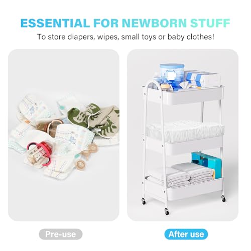 Easy Assembly: Assembling your new diaper caddy on wheels is a breeze with the included screwdriver. Simply follow the instructions and have it ready to use in just about 15 minutes. Made with high-quality, sturdy, and durable stainless steel material, this 3-tier baby nursery storage boasts strong bearing capacity