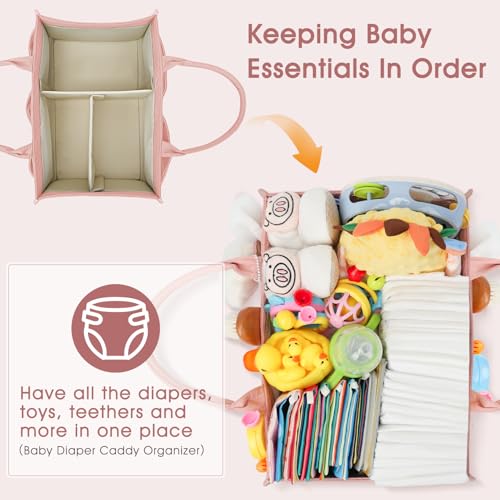 Skycase Large Diaper Caddy Organizer, Baby Organizers and Storage for Newborn Essentials Must Haves, Nursery Storage Basket for Baby Shower Gifts, Baby Registry Search for Boy or Girl – Pink