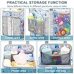 Multi-pockets: Our diaper caddy crib organizer with 1 deep upper compartment, 1 upper side mesh bag, 1 large pouch below, 2 side bottle pocket and 1 big mesh bags, which can hold most diapers and baby bottles, Wet paper towels, toys and bath supplies. Provide convenience for you to take care of your baby.