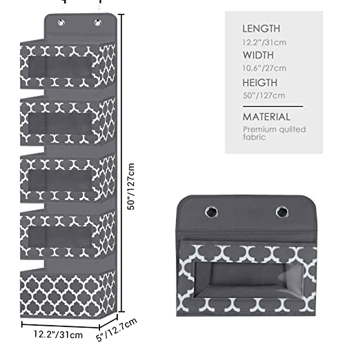 homyfort Over Door Organizer, Bathroom Pantry Nursery Cabinet Baby Storage with 5 Large Pockets & 2 Widened Hooks, Wall Mount Hanging Organizer with Clear Window for Diapers, Closet, Dorm, Grey