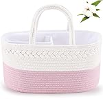 ABenkle Diaper Caddy Organizer – Cotton Rope Nursery Storage Basket for Baby Essentials, Boys & Girls Shower Gift, Changing Table Organizer, Pink