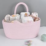 Baby Diaper Caddy Organizer for Girl Boy Rope Nursery Storage Bin Basket Portable Holder Tote Bag for Changing Table Car Travel Baby Shower Gifts Newborn Essentials Registry Must Have Items Pink