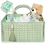 MOMINSIDE Diaper Caddy Organizer, Baby Basket Nursery Storage, Portable Changing Table Car caddy organizer for Girl Boy, Baby Registry Baby Shower Gifts, Newborn Essentials(Fair Green)