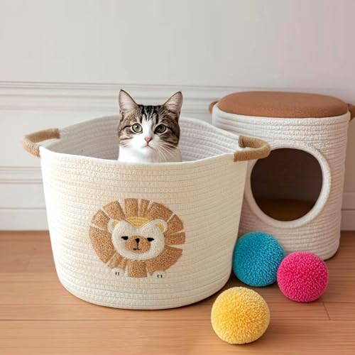Toy Storage Basket for Kids Baby Laundry Baskets for Blanket Cute Toys Organizer Nursery Hamper Cotton Rope Baskets for Organizing, tp Diaper Storage Bin for Baby Shower Gifts, Dog Cat Toy Box