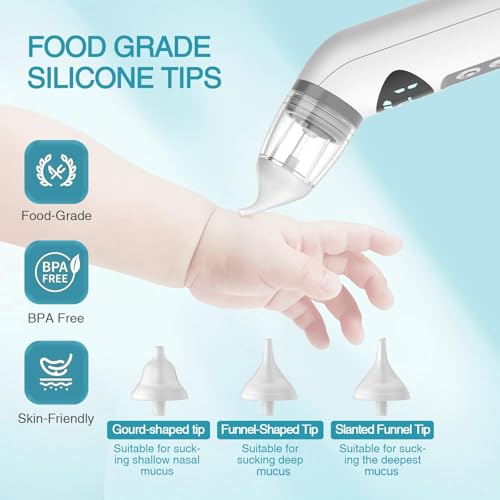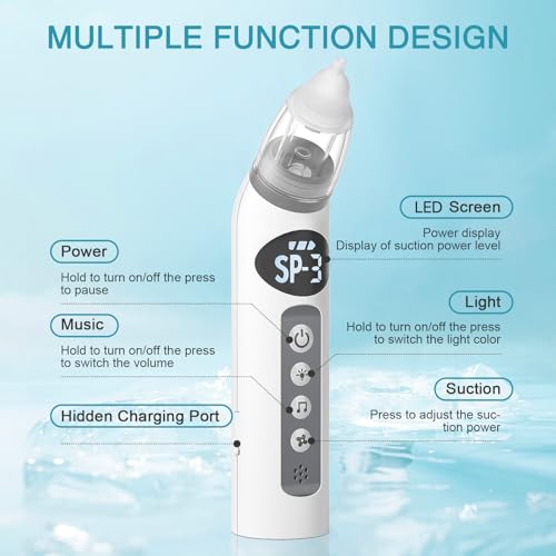 Bivni Baby Nasal Aspirator,IPX7 Waterproof Electric Nasal Aspirator for Baby,with 3 Silicone Tips, Adjustable 3 Levels Suction,8 Light Soothing Function & Music