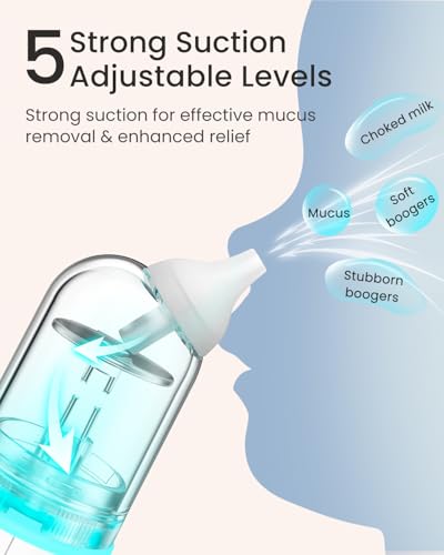 𝗘𝗙𝗙𝗘𝗖𝗧𝗜𝗩𝗘 & 𝗚𝗘𝗡𝗧𝗟𝗘 𝗦𝗨𝗖𝗧𝗜𝗢𝗡: GROWNSY’s nasal aspirator for baby offers 5 adjustable suction levels, swiftly removes snot and boogers, and ensures a personalized, gentle, and hygienic nasal care experience for your little ones.