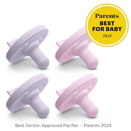Philips Avent Soothie one-piece newborn pacifiers are specially sized and shaped for babies 0-3 months old and adhere to the American Academy of Pediatrics guidelines¹. The set includes 2 lilac and 2 pink pacifiers.