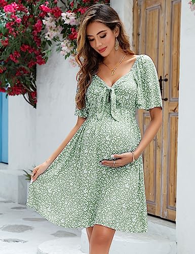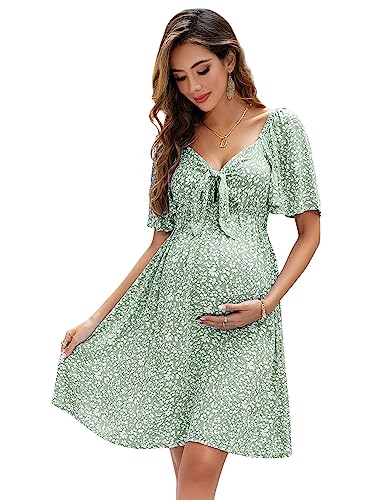 Maternity Dresses for Baby Shower Women’s Knotted V Neck Knee Length Wrap Baby Shower Dress