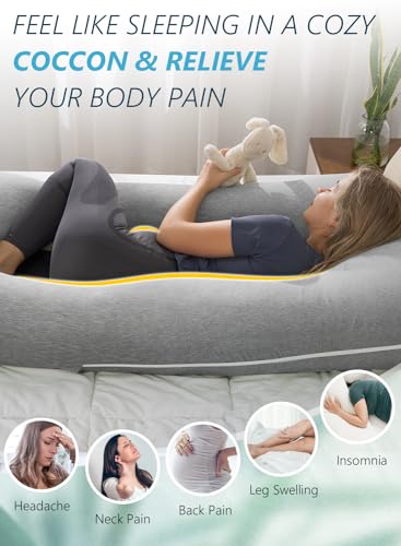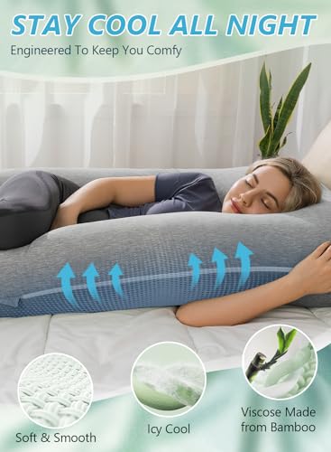 Meiz Pregnancy Pillows, Rayon Cover from Bamboo Pregnancy Pillows for Sleeping, Cooling Maternity Pillow for Pregnant Women, 55 Inch U Shaped Body Pillows for Adults, Grey