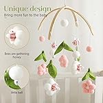 OESSUF Baby Mobile for Crib, Crib Nursery Mobile for Boys Girls, Boho Bee Flower Nursery Decor Soothe Toy Baby Shower Set for Infant Bedroom Hanging Decoration Toy, Pink