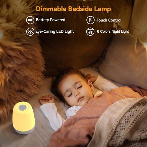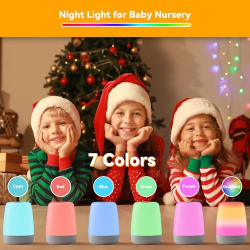 winshine Kids Night Light, 3 Way Dimmable Touch Night Light for Kids, 7 Colors Changing RGBW Rechargeable Portable Baby Night Light Lamp, Eye-Caring Night Light for Baby Nursery, Toddlers Bedroom