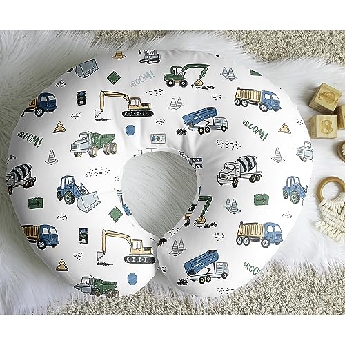 Sweet Jojo Designs Construction Truck Boy Nursing Pillow Cover Baby Breastfeeding Slipcover Infant Newborn Nursery Bottle Breast Feeding Pillowcase(Pillow NOT Included)- Grey Blue Green Transportation