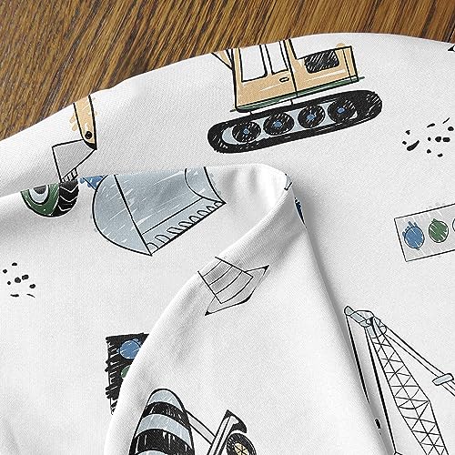 95% Rayon/5% Spandex Jersey Stretch Knit featuring grey, yellow, black, gray, blue and green transportation zone vehicles bulldozer tractor cement mixer crane construction truck print