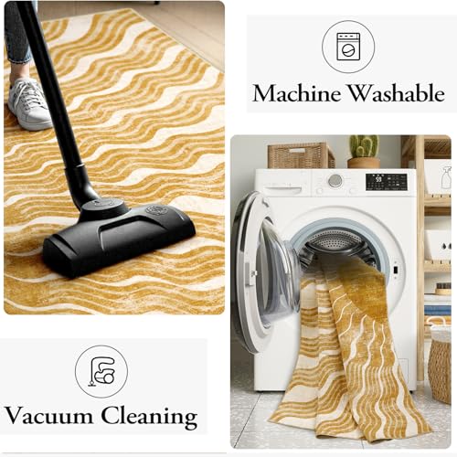 Boho Washable 5×7, Sun Print Soft Nursery Rug for Bedroom Ultra-Thin Kids Non Slip, Stain Resistant Classroom Carpet for Living Room Office (5’x 7′, Gold/Multi)
